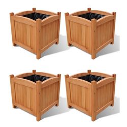 Cet ensemble de 4 beaux lits sureleves attirera tous les regards dans votre jardin, sur votre terrasse ou votre patio. Toutes sortes de plantes et de fleurs peuvent y etre plantees. Les jardinieres sont en bois solide resistant aux intemperies, ce qui est assez durable pour etre utilise a l'exterieu