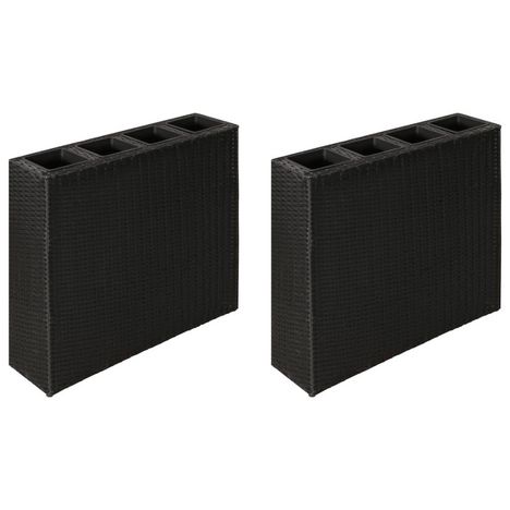 Lits sureleves de jardin avec 4 pots 2 pcs Resine tressee Noir