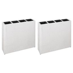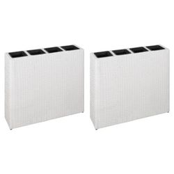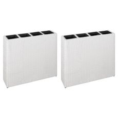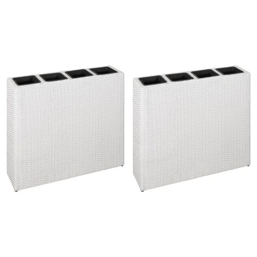 Lits sureleves de jardin et 4 pots 2 pcs Resine tressee Blanc