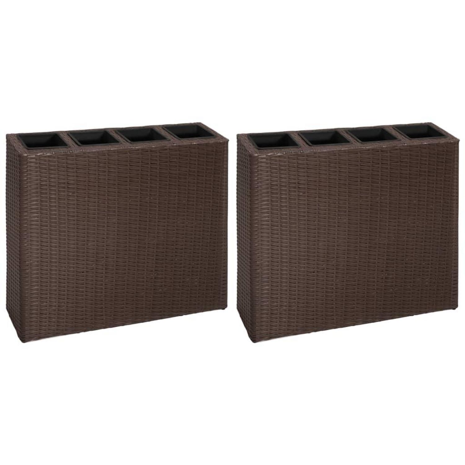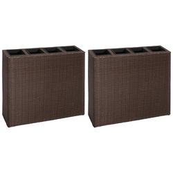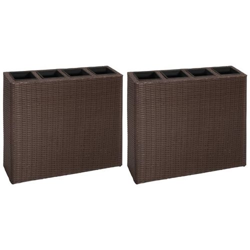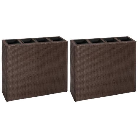 Lits sureleves de jardin et 4 pots 2 pcs Resine tressee Marron