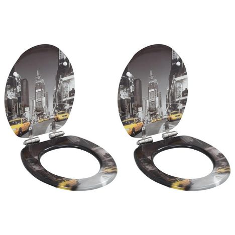lot de 2 Siege WC MDF Couvercle a fermeture en douceur New York