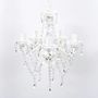 Ce lustre a une tige centrale magnifiquement conçue en verre de cristal avec des bras acryliques incurves, des appliques et des perles de gouttelettes. Vous pouvez utiliser a la fois des ampoules et des LED.