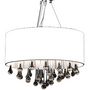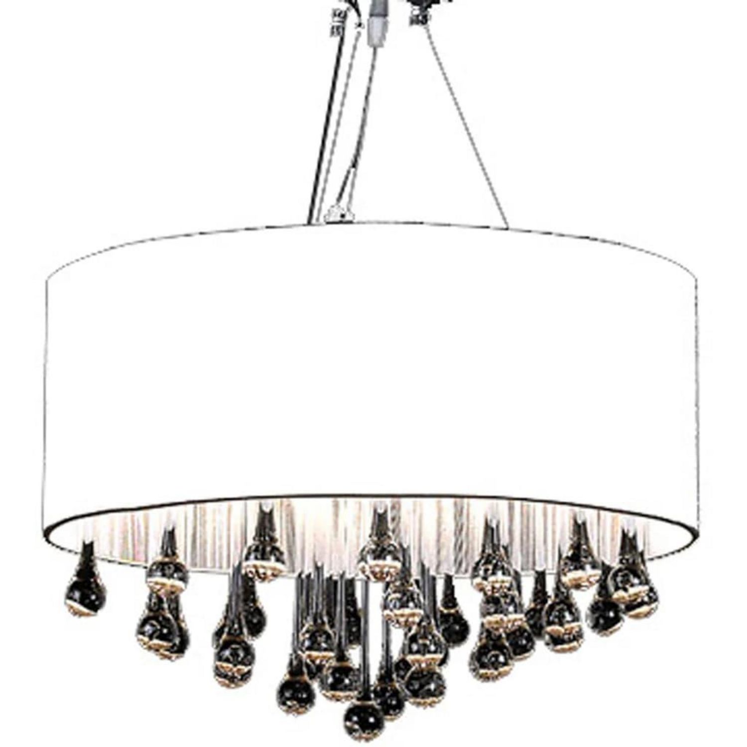 Le lustre a un boîtier en metal chrome et est recouvert d'un abat-jour blanc translucide en fil. La lampe suspendue tendance a un design en cristal royal. Le verre incolore de haute qualite donne une vraie clarte et brille avec une lumiere elevee (meme a partir d'autres sources lumineuses), dans le spectre il y aura un magnifique jeu de couleurs.