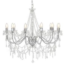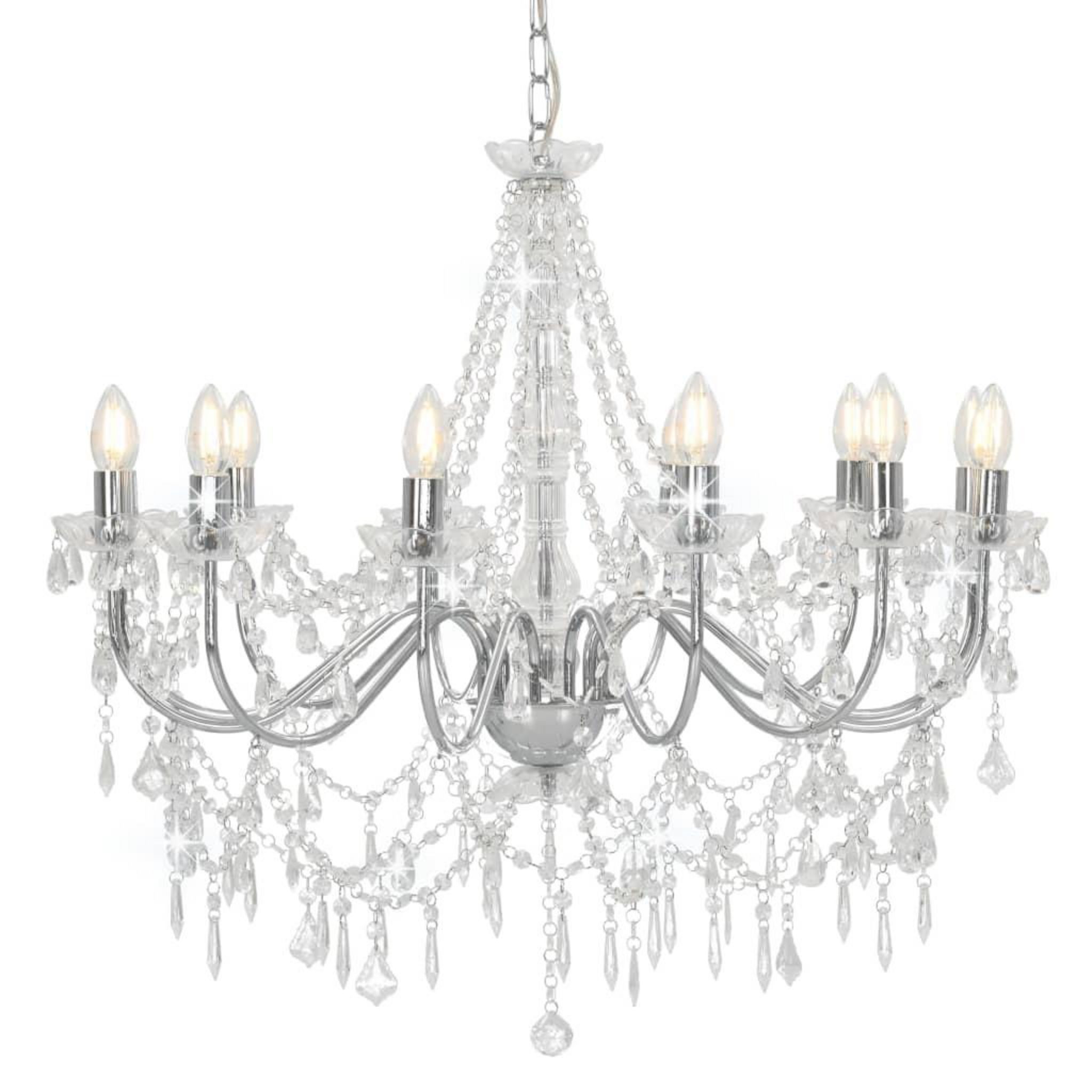 Lustre avec perles Argente 12 ampoules E14