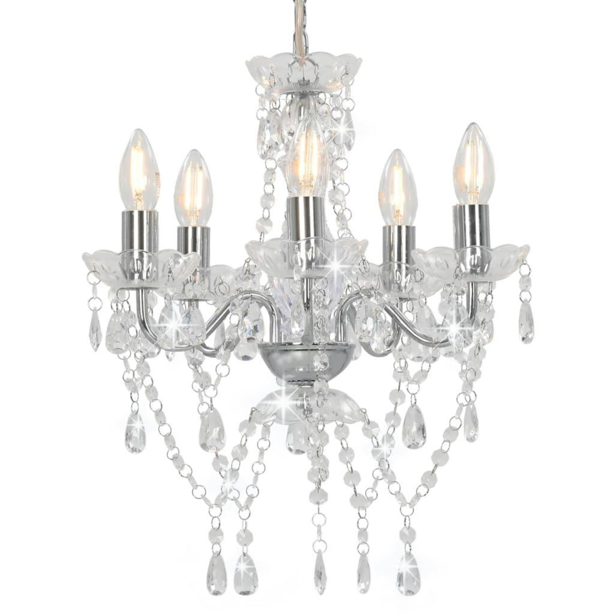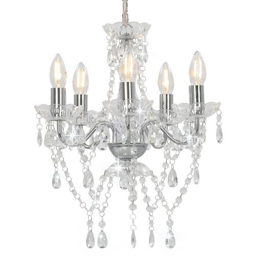 Lustre avec perles de cristal Argente Rond 5 x E14