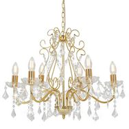 Lustre avec perles de cristal Dore Rond 6 x E14