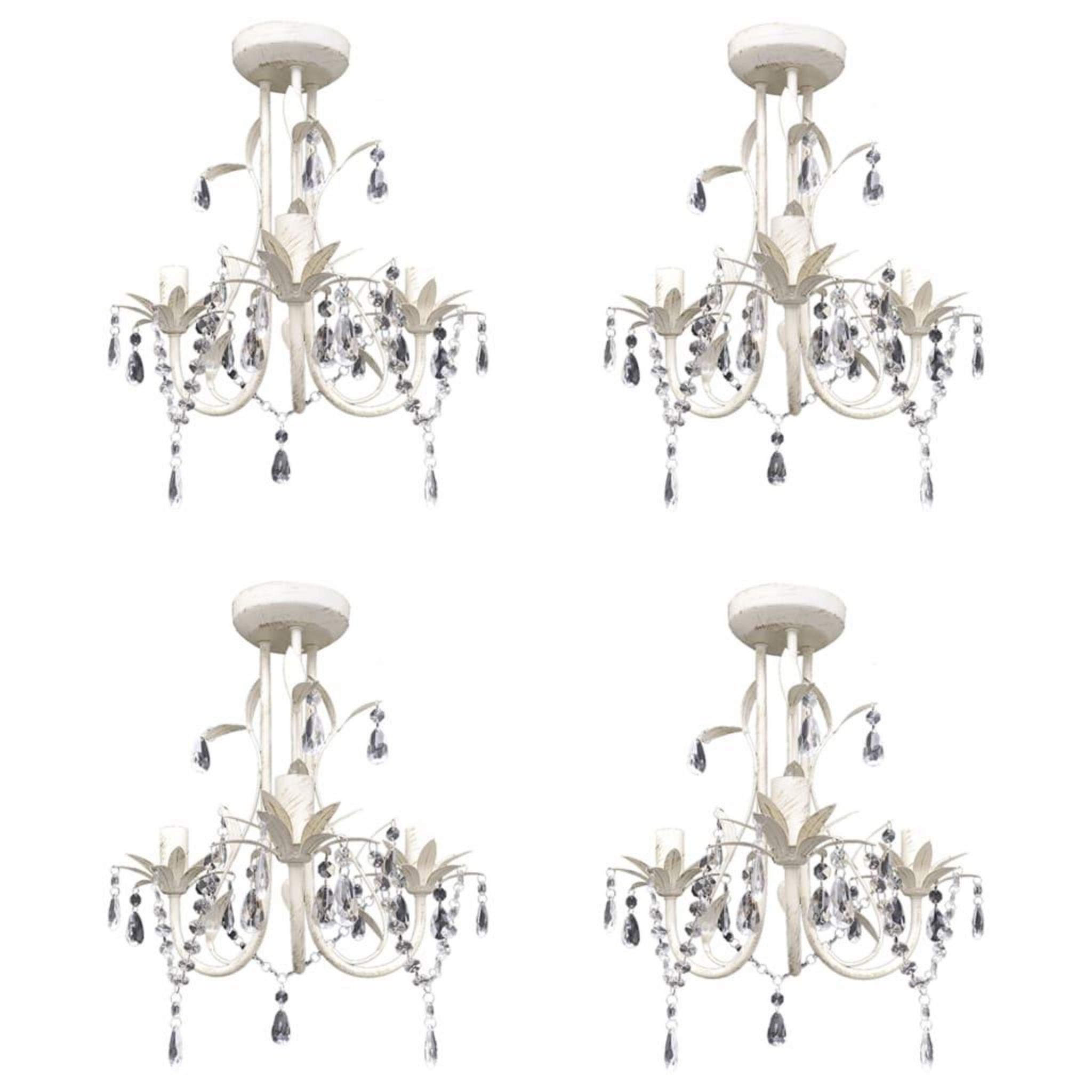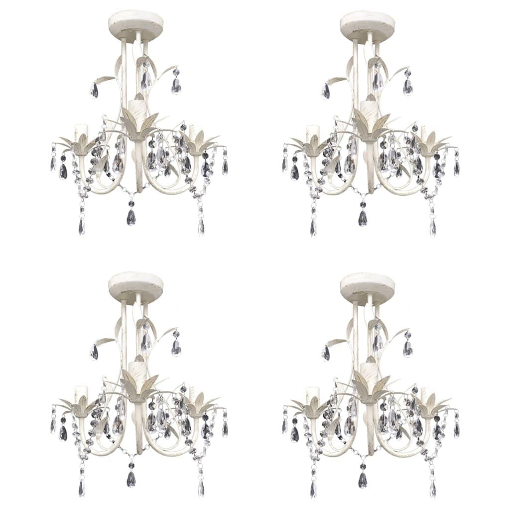 Lustres suspendus a cristaux 4 pcs Blanc elegant