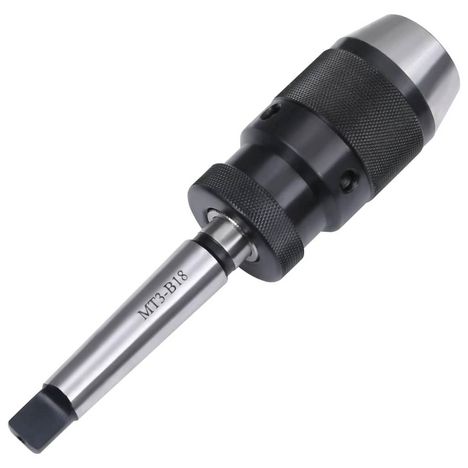 Ce mandrin robuste avec arbre conique MT3-B18 est largement utilise avec les perceuses, fraiseuses, tours, aleseuses et outils a main electriques. Il a une plage de serrage de 1-16 mm.