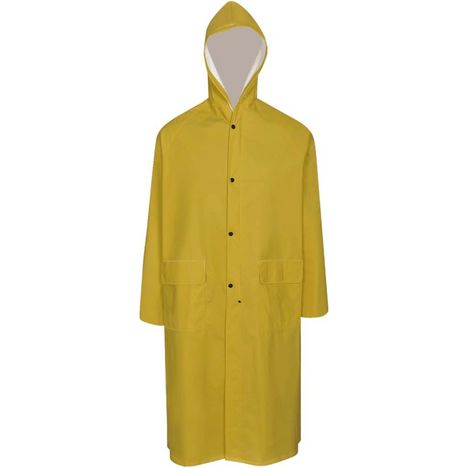 Manteau de pluie long impermeable resistant a capuche jaune XXL