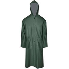 Manteau de pluie long impermeable resistant a capuche vert L