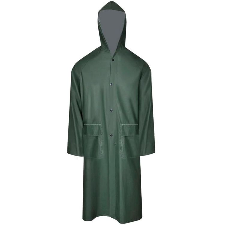 Manteau de pluie long impermeable resistant a capuche vert XXL