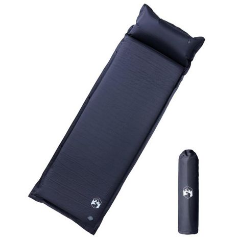 Matelas de camping autogonflant avec oreiller 1 personne gris
