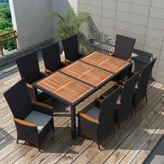 Meuble a dîner d'exterieur 9 pcs Resine tressee et acacia Noir