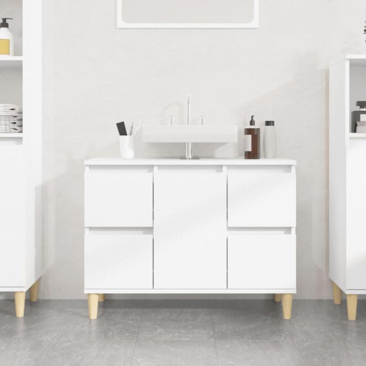 Meuble d évier blanc brillant 80x33x60 cm bois d ingénierie