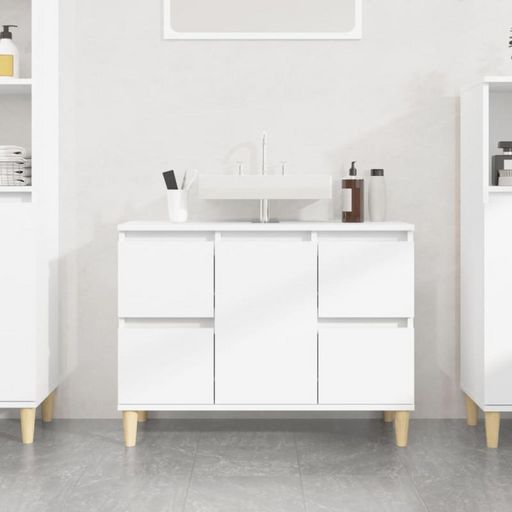 Ce meuble d'évier blanc brillant VIDAXL allie esthétique moderne et praticité. Son fini laqué apporte une touche lumineuse à votre salle de bain, tandis que ses dimensions compactes (80 x 33 x 60 cm) s'adaptent aux espaces restreints sans sacrifier le style.