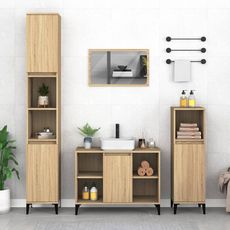 Cette armoire de lavabo est censee etre un excellent supplement a votre salle de bain, ce qui lui donne une apparence ordonnee et saisissante ! Materiau durable : le bois d'ingenierie est d'une qualite exceptionnelle avec une surface lisse et presente egalement resistance, stabilite et resistance a