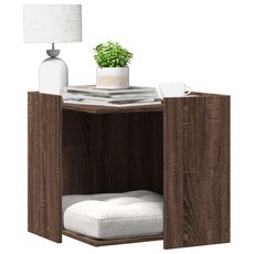 Meuble de bac a litiere pour chat chene marron bois ingenierie