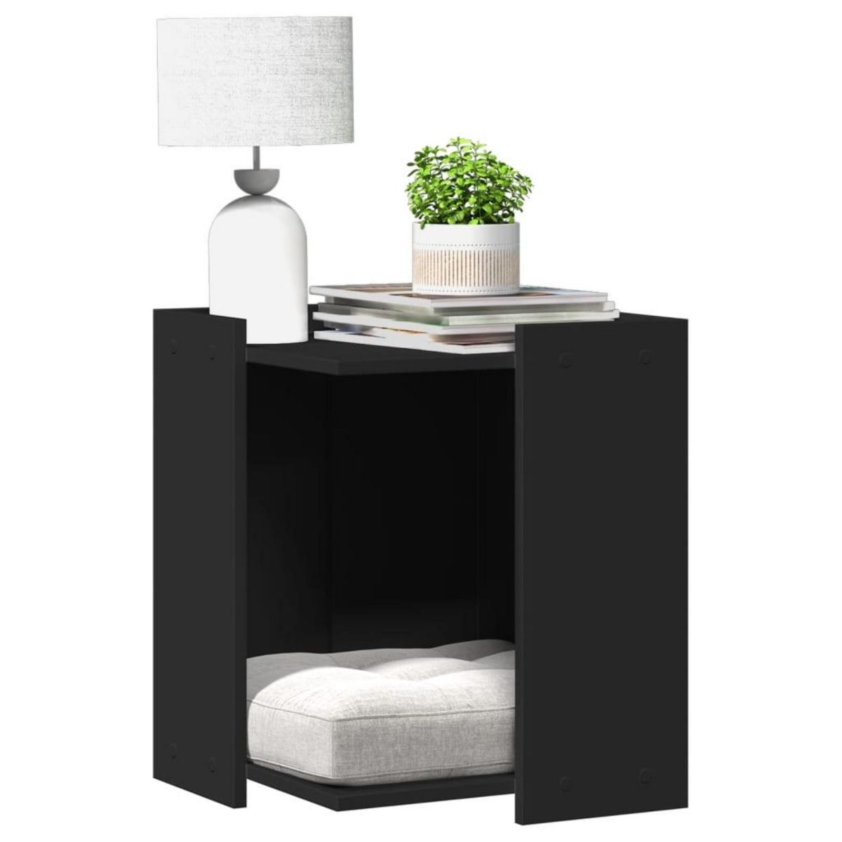 Meuble de bac a litiere pour chat noir bois d'ingenierie