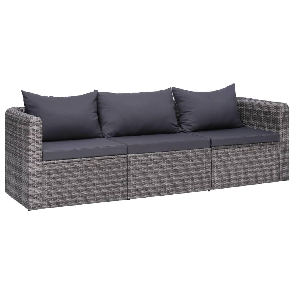 Meuble de jardin 3 pcs avec coussins Gris Resine tressee