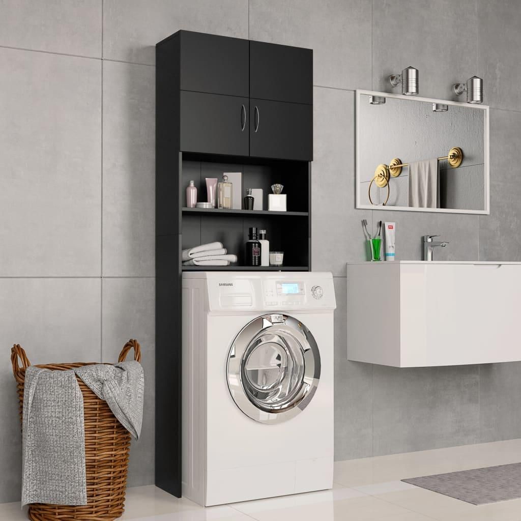 Meuble de machine a laver Noir 64x25,5x190 cm Bois d'ingenierie