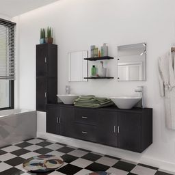 Meuble de salle de bain 11 pcs avec lavabo et robinet Noir