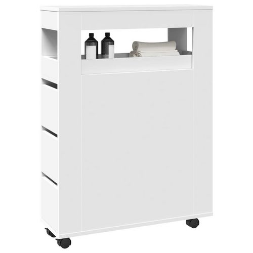 Meuble etroit de salle de bain a roulettes blanc