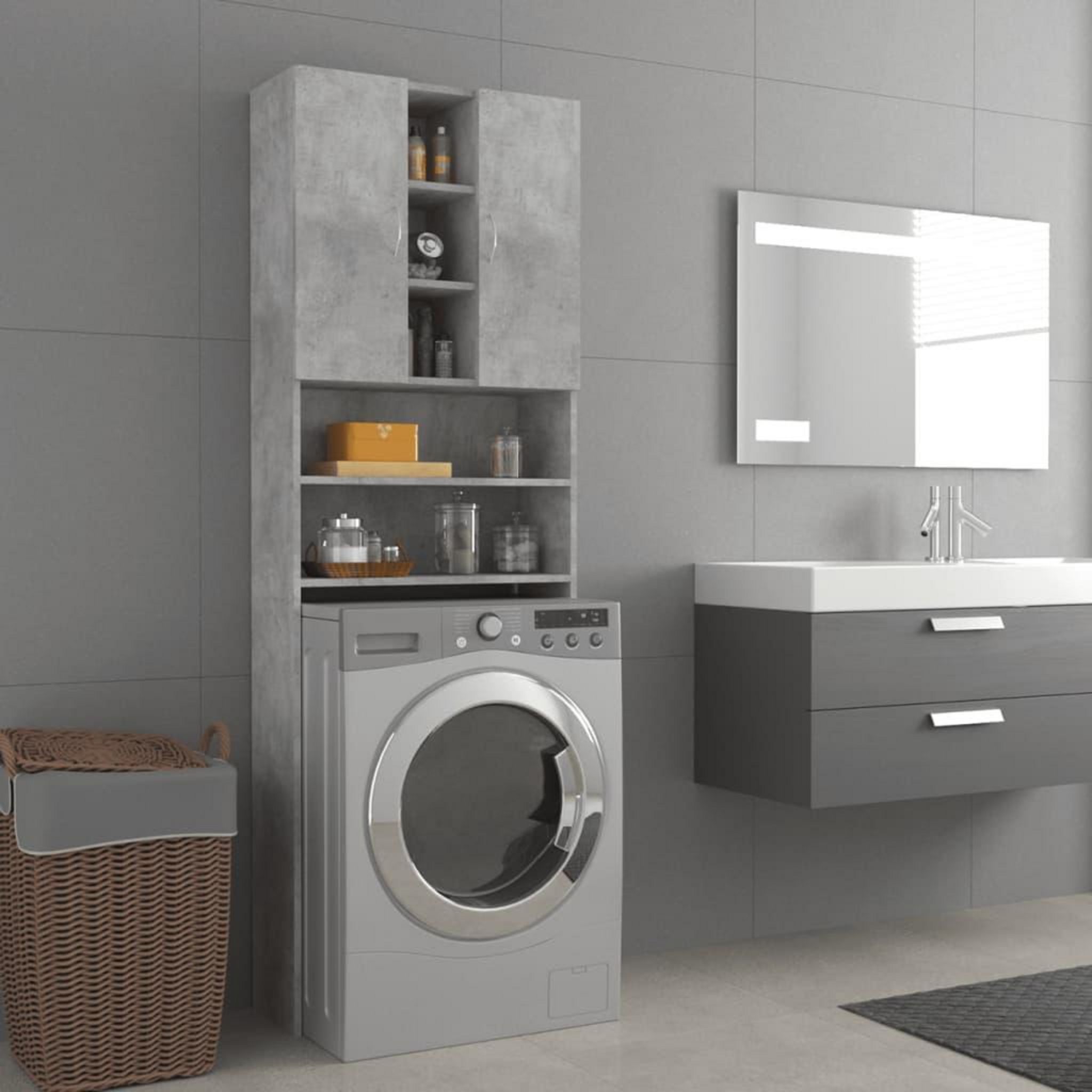 Meuble pour machine a laver Gris beton 64x25,5x190 cm