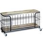 Ce meuble TV est en bois de manguier massif, ce qui signifie que ce meuble est robuste, stable et durable. Son etagere inferieure est dotee d'espace pour placer vos appareils multimedias, magazines, etc. Le cadre en fer accentue sa robustesse et la conception de style boulangerie rend ce coffret vraiment etonnant et unique. Grace a ses 4 roulettes, le meuble TV peut etre place de maniere flexible et facilement deplace. Les grains visibles rendent chaque meuble unique et legerement different du suivant.