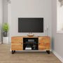 En savoir +Ce meuble TV en bois accrocheur degage une touche de charme industriel qui s'integre parfaitement a la decoration de votre piece.
