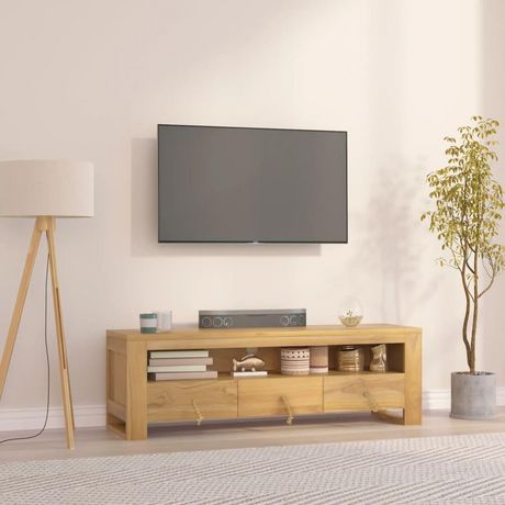 Ce meuble TV altique en bois est un supplement pratique et accrocheur a votre interieur. Bois de teck massif : ce meuble multimedia est fabrique en bois de teck massif. Le bois de teck massif est un materiau naturel magnifique. Il a ete chevronne, seche au four, puis sable finement pour lui donner u