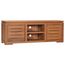 Construit a partir de bois dur de teck extremement durable, ce meuble TV a ete assaisonne, seche au four puis ponce finement pour donner un aspect tres lisse. Le bois de teck est connu pour sa resistance exceptionnelle, ce qui le rend beaucoup plus adapte pour les meubles que tout autre type de bois. Le bois de teck est le choix parfait si vous voulez acheter un meuble durable. Le meuble TV en bois a un dessus stable pour placer TV, plantes en pot et autres articles decoratifs. Il dispose egalement de deux portes et de deux compartiments qui offrent amplement d'espace pour stocker vos DVD, magazines et autres articles divers.