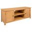 Ce meuble TV solide et robuste est fabrique en chene. Le dessus de table solide offre une surface stable et securisee sur laquelle vous pouvez placer votre televiseur, un panier de fruits ou un vase ou d'autres objets decoratifs. Ce mobilier pour television comporte deux portes et deux compartiments ouverts, fournissant l'espace suffisant pour stocker vos appareils multimedias, livres et divers autres articles.