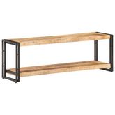 Ce meuble TV en bois ajoute un aspect industriel et convient a votre salon et votre chambre a coucher. Le meuble TV est fait de bois de manguier brut, un bois dur tropical avec la force de soutenir le poids. Il resiste egalement a l'usure du temps, ce qui le rend stable et durable. Le dessus robuste