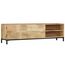 Cette armoire HiFi est fabriquee en bois de manguier massif, un bois dur a grains denses. Le bois brut de manguier a la force de supporter le poids et l'usure causee par le temps. Par consequent, ce buffet magnifiquement conçu est stable, durable et attrayant. L'artisanat parfait garantit que chaque etape du processus est realisee avec le plus grand soin, qu'il s'agisse de polissage ou de laquage. En outre, ce buffet comprend 1 armoire avec 2 portes et 2 compartiments, offrant un grand espace pour ranger vos appareils multimedia, vos livres et divers autres objets.