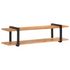 Le meuble TV est fait de bois d'acacia massif, ce qui le rend stable et durable. Le savoir-faire et les beaux grains de bois rendent chaque meuble unique et legerement different l'un de l'autre. Les pieds en fer enduit de poudre noire ajoute a sa stabilite supplementaire. L'etagere inferieure vous permet de garder les lecteurs DVD, les consoles de jeux, les appareils de diffusion en continu et les supports multimedia bien organises.