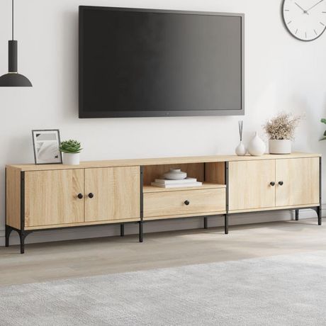 Meuble TV a tiroir chene sonoma 200x25x44 cm bois d'ingenierie