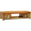 Ce meuble TV est fait de bois de recuperation, ce qui signifie que chaque meuble est unique et legerement different l'un de l'autre. Le mobilier fabrique a partir de bois de recuperation a des caracteristiques de differents bois comme le bois de teck, l'acacia, le bois de manguier, le bois de saal etc. Le bois de recuperation est solide, stable, durable et beau. Les trous de clous ou les grains a face claire apportent leur histoire avec eux et invitent une autre generation a les impregner des leurs. Garder ce meuble a la maison montrera votre concept de conservation des ressources, de protection de l'environnement et de developpement durable.