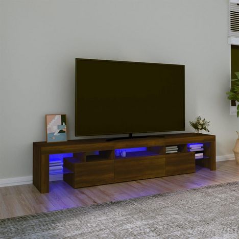 Meuble TV avec lumieres LED Chene marron 200x36,5x40 cm