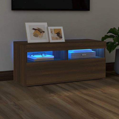 Meuble TV avec lumieres LED Chene marron 90x35x40 cm
