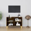 Meuble TV avec pieds en bois massif Chene fume 69,5x30x50 cm