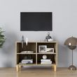 Meuble TV avec pieds en bois massif Chene sonoma 69,5x30x50 cm