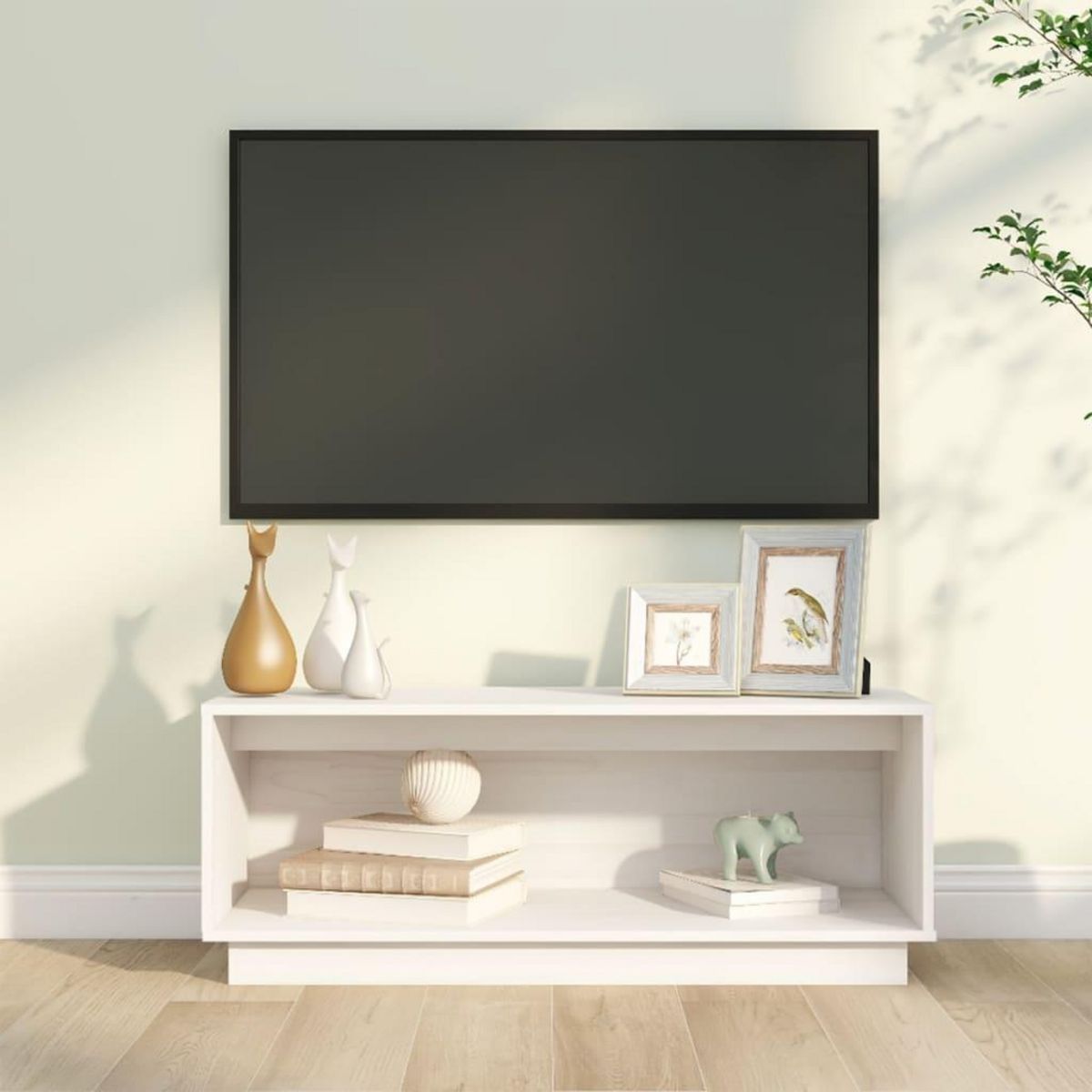 Meuble TV Blanc 90x35x35 cm Bois de pin massif