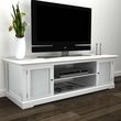 Fabrique en MDF robuste et de bois de pin, le meuble TV resiste bien a l'usure quotidienne. La finition de peinture blanche facilite le nettoyage avec un chiffon humide.