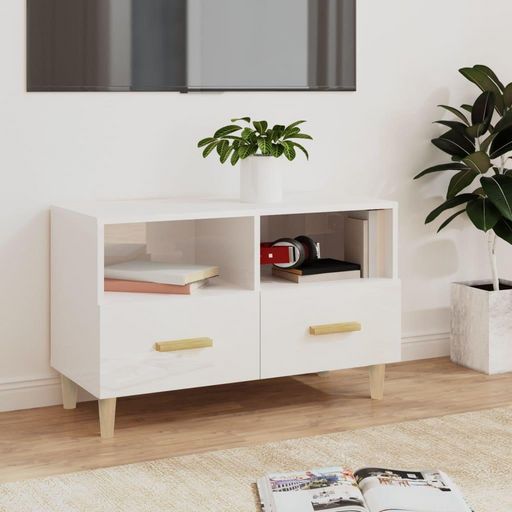 Meuble TV Blanc brillant 80x36x50 cm Bois d'ingenierie