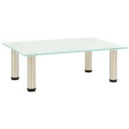 Ce meuble TV givre avec une construction en verre trempe ajoute une touche moderne a votre salon et a votre chambre a coucher. Cette table de television est fabriquee en verre trempe epais et en acier inoxydable resistant, ce qui la rend extremement solide et sure. Le dessus de table solide peut etr