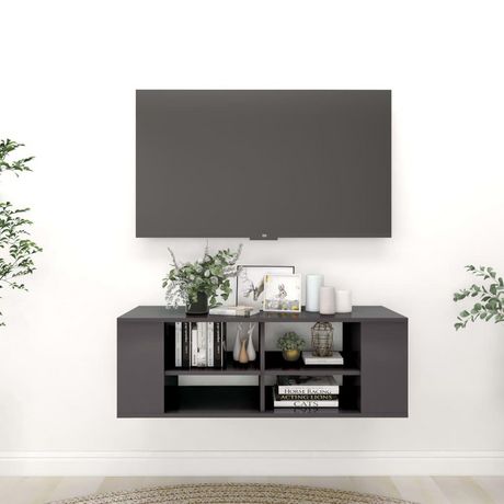 Meuble TV mural Gris brillant 102x35x35 cm Bois d'ingenierie