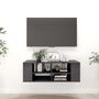 Equipe d'un grand espace de rangement pour organiser divers articles, ce meuble TV mural sera certainement un supplement pratique et accrocheur dans votre maison. Ce meuble TV suspendu dispose d'etageres centrales reglables, qui peuvent etre ajustees pour trois niveaux et vous pouvez egalement les e