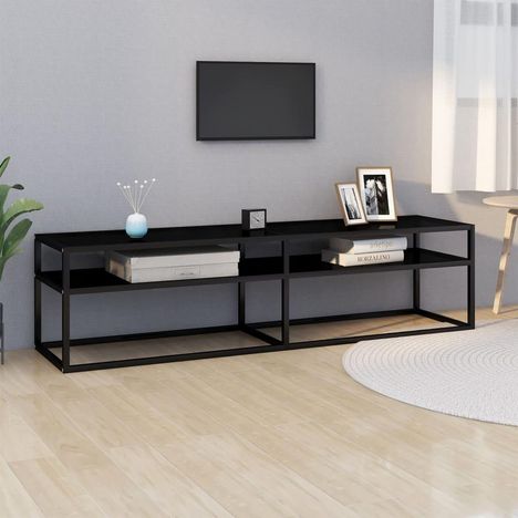 Meuble TV noir 160x40x40,5 cm verre trempe