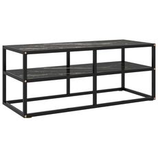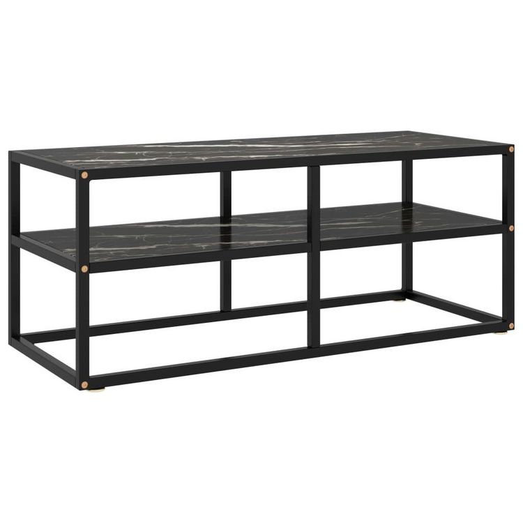 Meuble TV noir avec verre marbre noir 100x40x40 cm