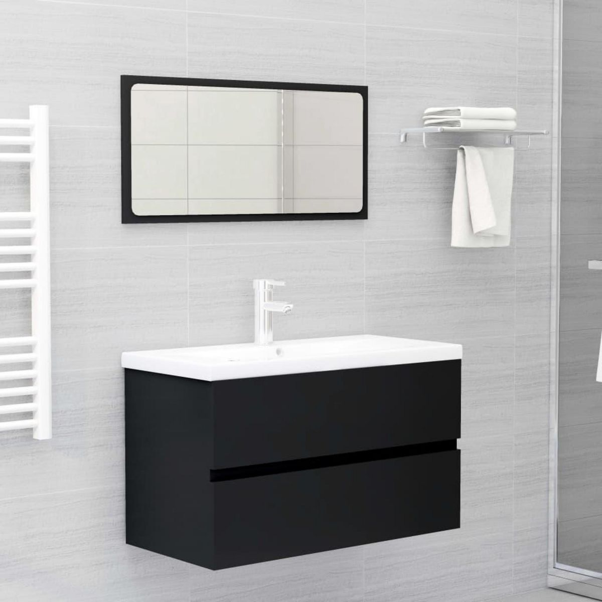 Cet ensemble de meubles de salle de bain elegant, qui se compose d'une armoire d'evier, d'un lavabo integre et d'un miroir, s'adapte parfaitement a votre salle de bain ou a votre salle d'eau avec une apparence frappante et bien rangee.